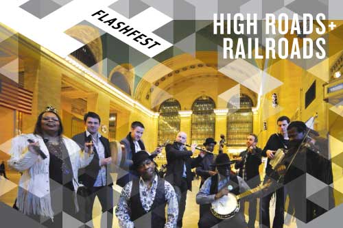 FLASHFEST is a new pop-up arts happening that explores all art forms in myriad ways with appeal to all ages and interests. Each event will turn on a particular theme, which will be up for a short time and then disappear until the next FLASHFEST. The first event at Grand Park, “High Roads + Railroads,” features roots music from Irish and African American traditions.